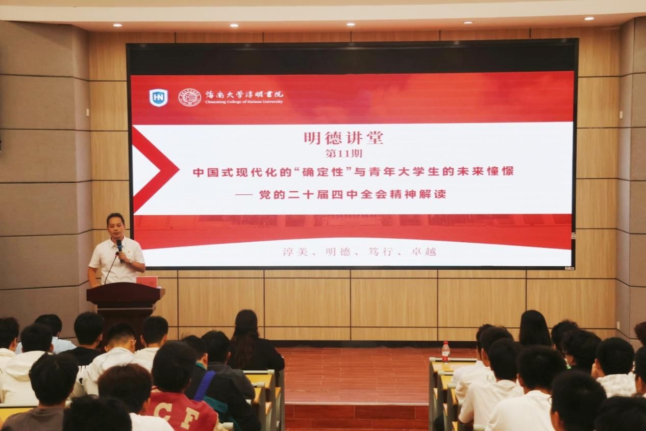 为进一步深入学习贯彻党的二十大及二十届四中全会精神,10月25日上午,必赢242net官网第11期“明德”讲堂在学校邵逸夫学术交流中心1111报告厅举办。本期讲堂邀请必赢242网址马克思主义学院副院长、博士生导师、海南省拔尖人才王一闳授课,书院200余名师生参加讲座。