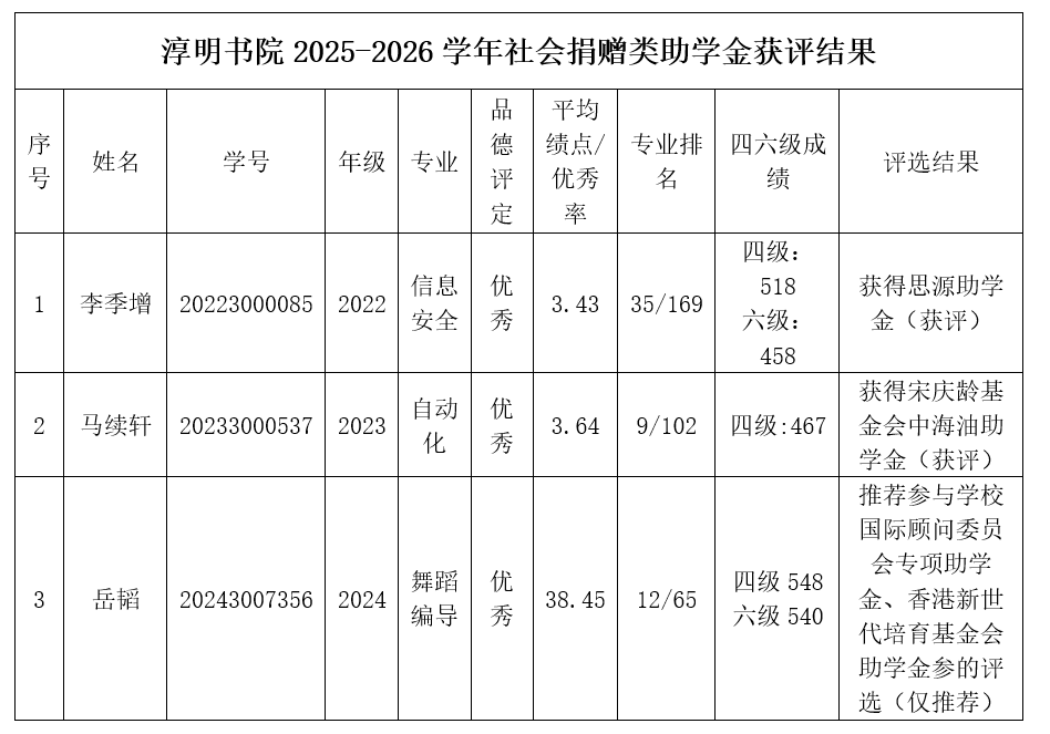 必赢242net官网关中国宋庆龄基金会中海油大学生助学基金等助学金评选结果公示